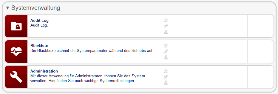 Um das Feature Nachreichen von Unterlagen für eine EFAST-Plattform zu aktivieren, muss der Benutzeraccount über die Berechtigung verfügen, die App Administration nutzen zu dürfen. Die App befindet sich in der Gruppe Systemverwaltung und wird mit einem Klick auf die App geöffnet.