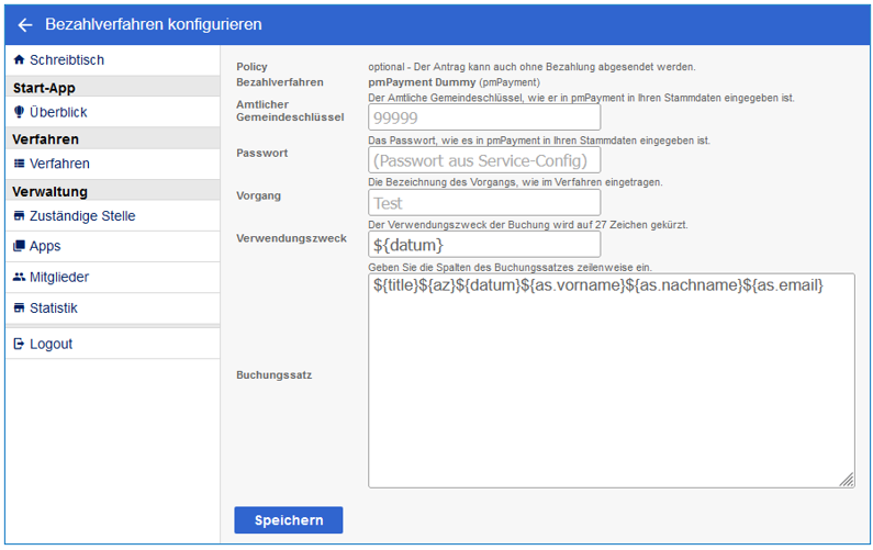 Im Anschluss können man den Bezahldienst konfigurieren. Mit einem Klick auf den Button Speichern wird die Konfiguration übernommen