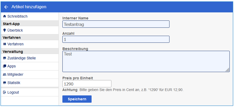 Änderungen an den Preisen einzelner Artikel in der Artikelverwaltung werden erst auf der Bezahlen-Seite, kurz vor Aufruf der Bezahlschnittstelle sichtbar. Im Antrag selbst müssen die Preise manuell nachgepflegt werden. Bitte kontaktieren Sie hierfür das ihren Plattformbetreiber oder Service-Center der FJD.