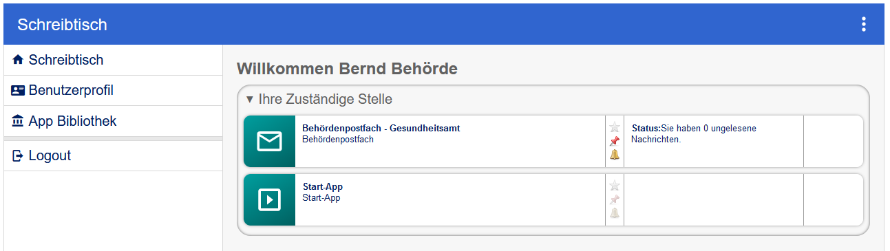 Das Behördenpostfach selbst ist für alle Mitglieder auf dem Schreibtisch sichtbar und kann mit einem Klick geöffnet werden.