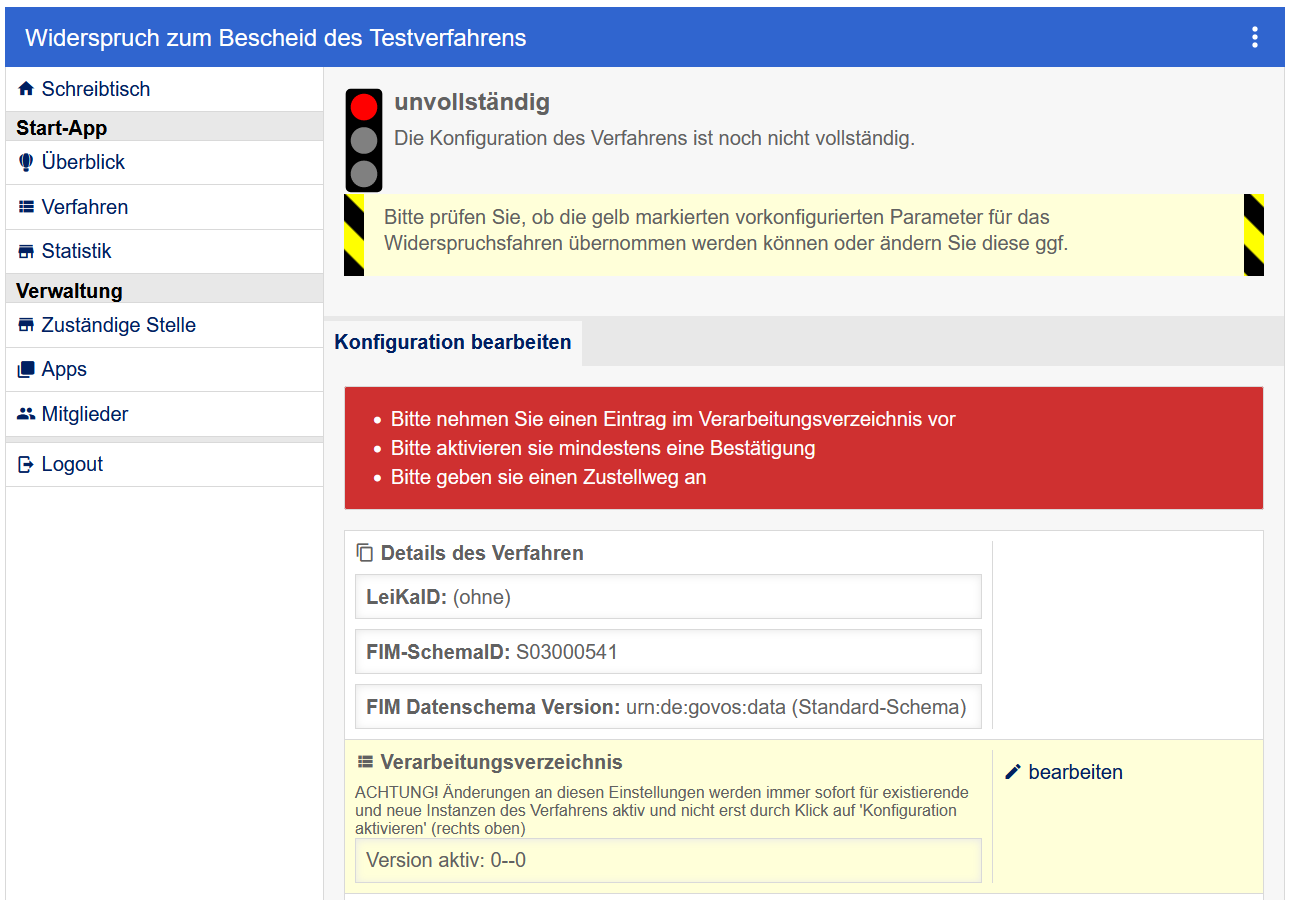 Bei der direkten Verknüpfung mit einem existierenden Verfahren werden einige Einstellungen für das Widerspruchsverfahren automatisch aus dem ausgewählten Antragsverfahren übernommen. Anpassungen der Konfiguration des Widerspruchsverfahrens werden analog zu einer behördlichen Leistung vorgenommen.