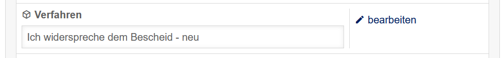 Um die mitgelieferte Vorlage auszutauschen, öffnet man die Verfahrenskonfiguration des Widerspruchsverfahrens, sucht den Punkt Verfahren und öffnet die Konfiguration mit einem Klick auf bearbeiten.