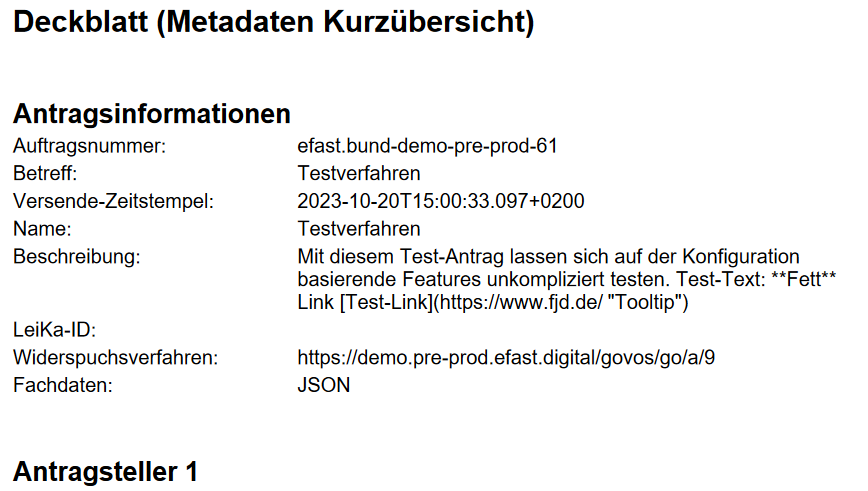 Um den Zugang zu verknüpften Widerspruchsverfahren zu vereinfachen, wird der Link oder die Start-URL nicht nur in der Verfahrenskonfiguration übermittelt, sondern auch im metadata.json und deckblatt.pdf.