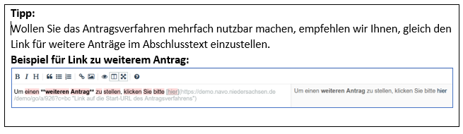 Diese Funktion ist insbesondere für Einrichtungen vorteilhaft, die für viele Kunden den gleichen Antrag stellen müssen.