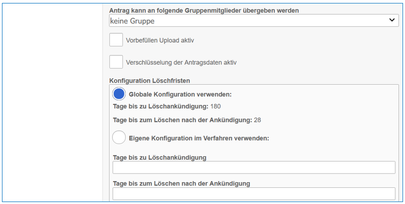 Im Bereich „Antragstyp“ wird das Wording für den Antrag festgelegt.