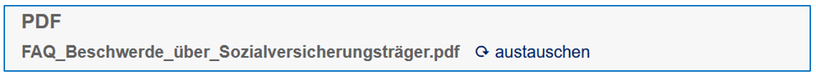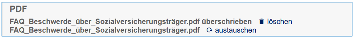 Wenn ein hinterlegtes PDF ausgetauscht werden soll, kann dies mit Klick auf die Schaltfläche "austauschen" und anschließender Auswahl der neuen Datei erfolgen.