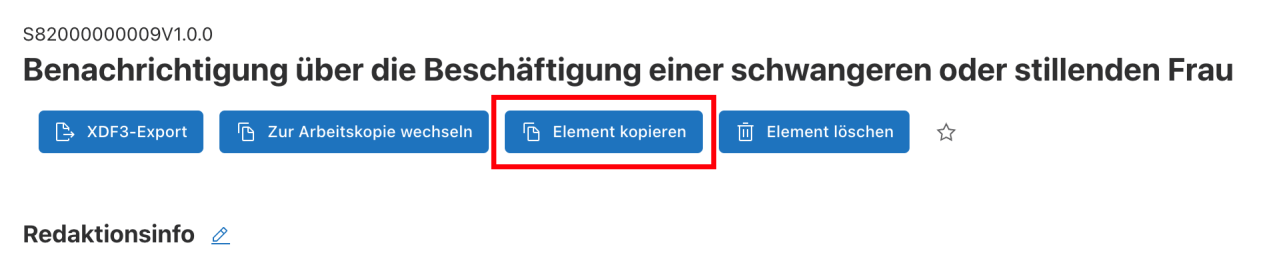 Wir wollen jetzt eine neue Arbeitskopie eines Datenschemas erstellen und diese modifizieren, z. B. um aus einem Stammdatenschema im Goldstatus ein Referenzdatenschema zu erzeugen.