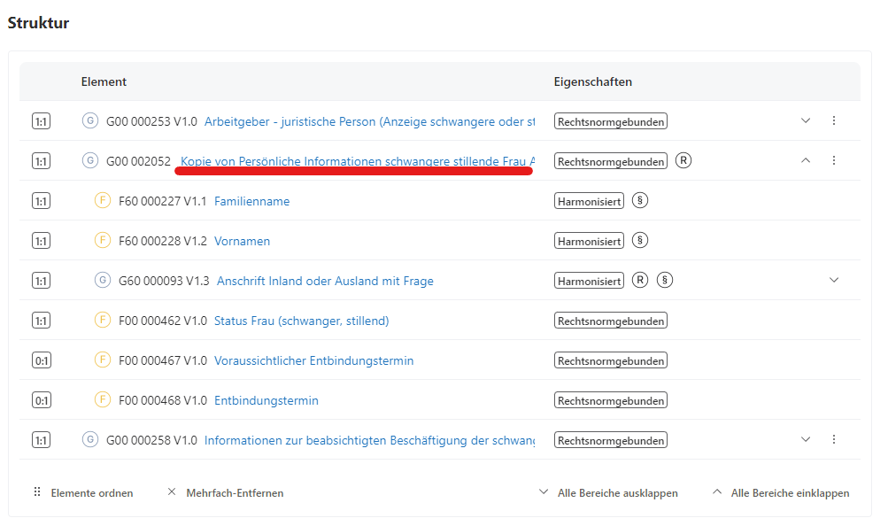 Wir betrachten folgenden Fall: eine Datenfeldgruppe aus BOB soll nachgenutzt werden, es werden jedoch nicht alle Elemente der Datenfeldgruppe benötigt.