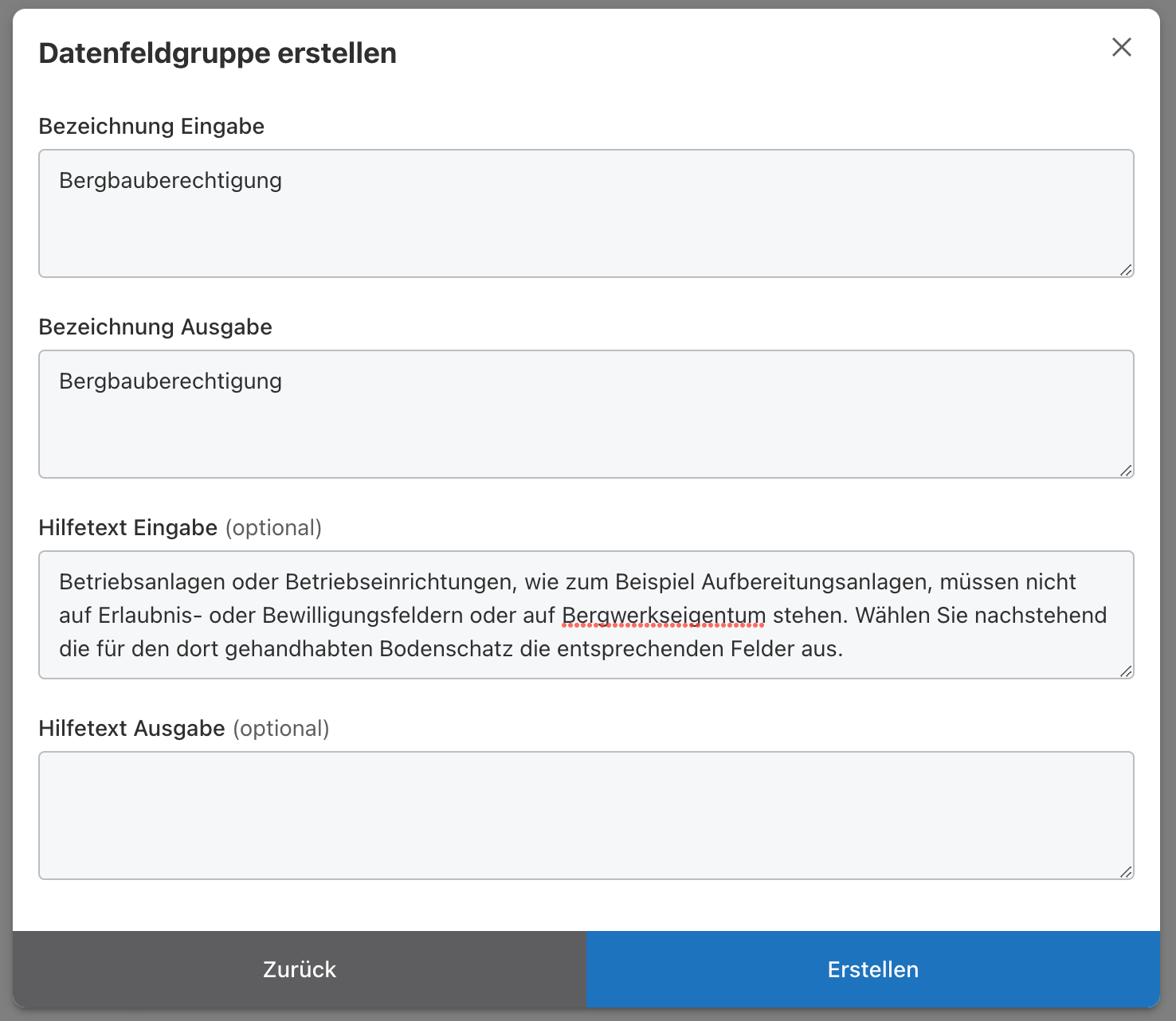 In der Übersicht werden alle bestehenden Datenfeldgruppen aufgelistet.