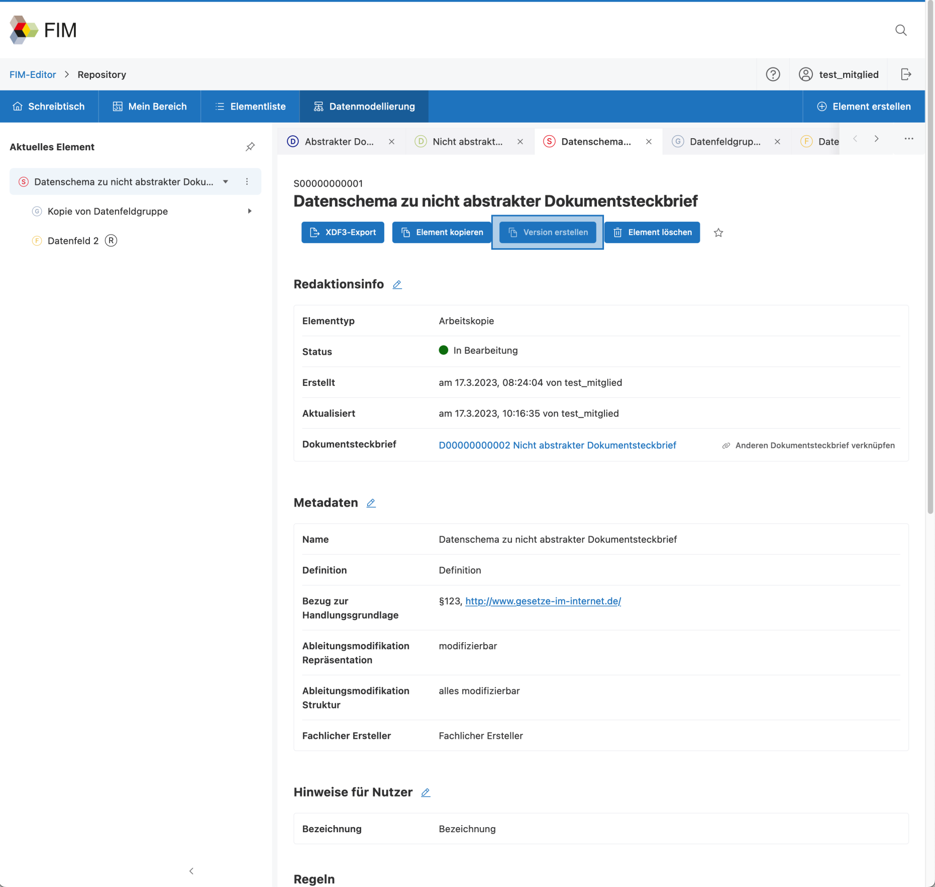 Elemente können versioniert werden. Die Versionskennung enthält 🆕 jetzt eine zusätzliche Stelle, die Micro-Version. Diese ist für kleinere Anpassungen an Elementen gut.