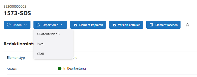 Elemente können in den Formaten XDatenfelder 3, Excel und XFall exportiert werden