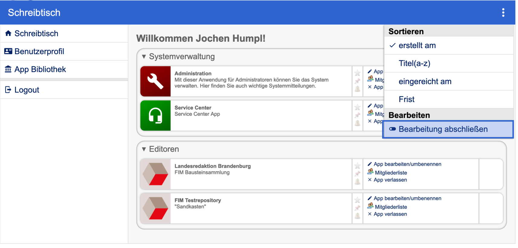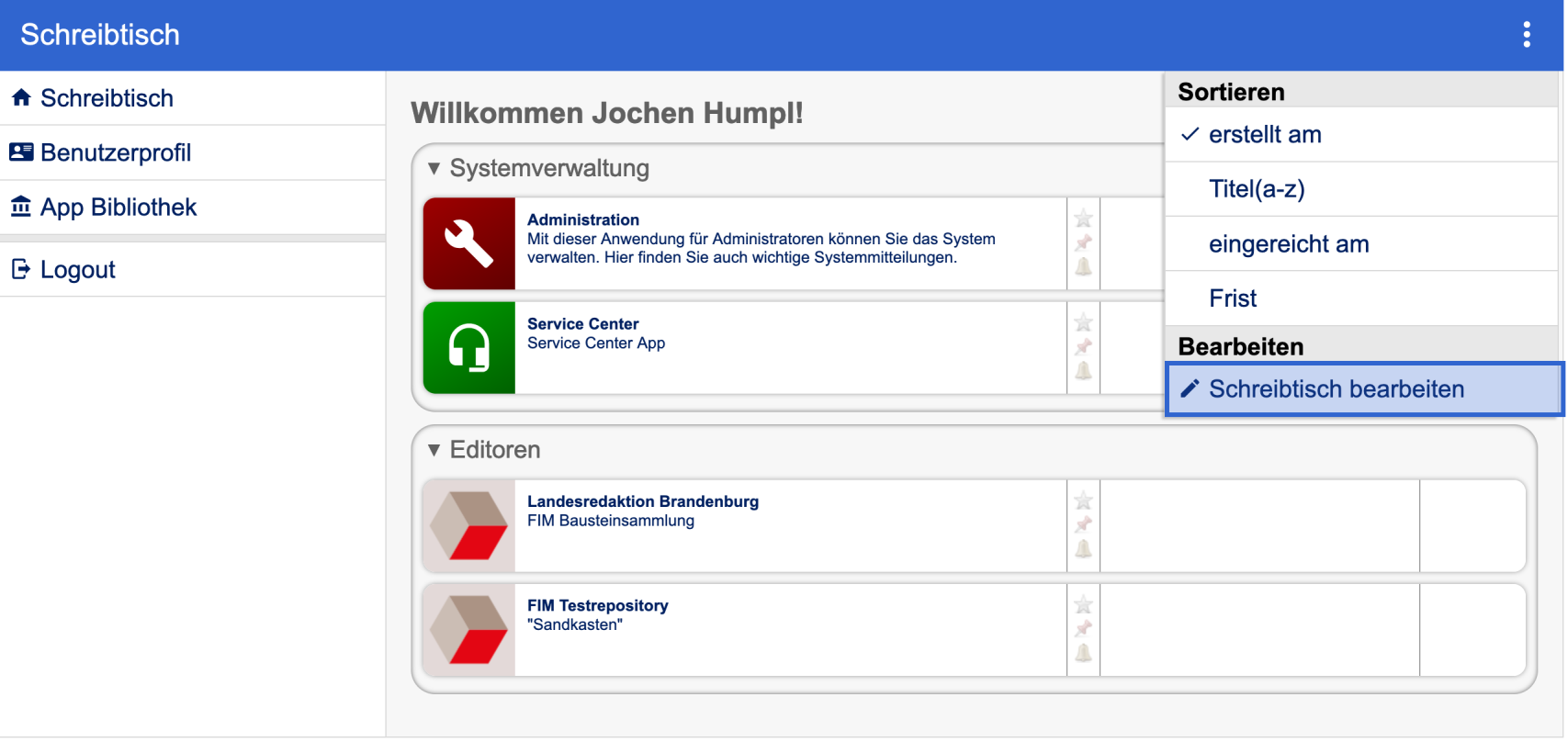 Zunächst muss „Schreibtisch bearbeiten“ ausgewählt werden.