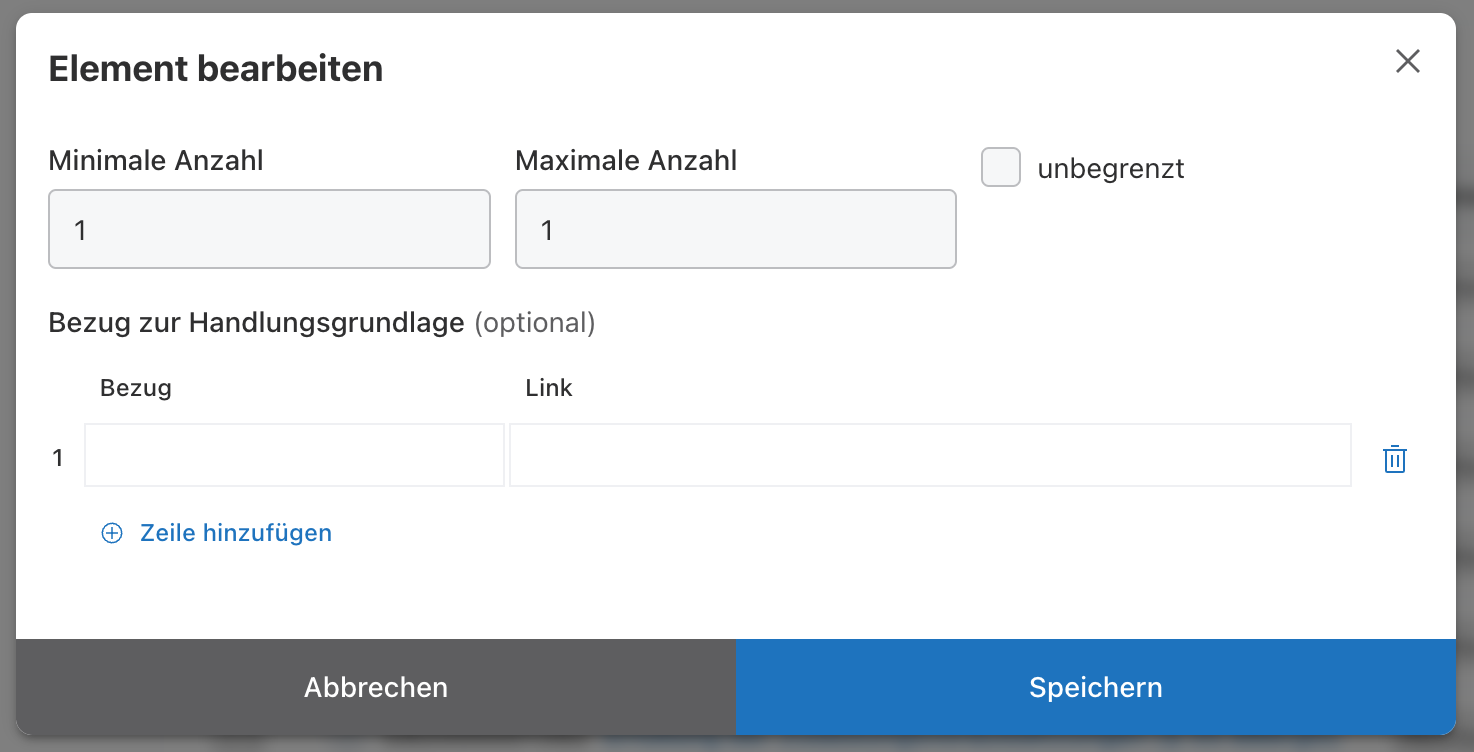 Als Unterelemente bezeichnet man alle Bausteine: Dokumentensteckbriefe, Datenschemata, Datenfeldgruppen, Datenfelder , die in der Struktur bzw. Hierarchie einem anderen Baustein untergeordnet sind.
