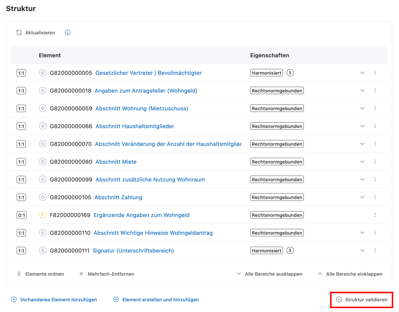 Es werden folgende Prüfungen an der Struktur durchgeführt und entsprechende Warnmeldungen ausgegeben, beim ausführen der Funktion “Struktur validieren”: